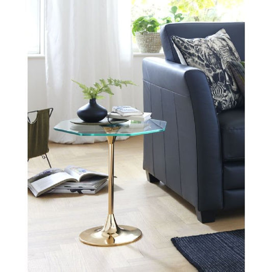 Bijzettafel 8-hoekig glasblad met rose trompetvoet